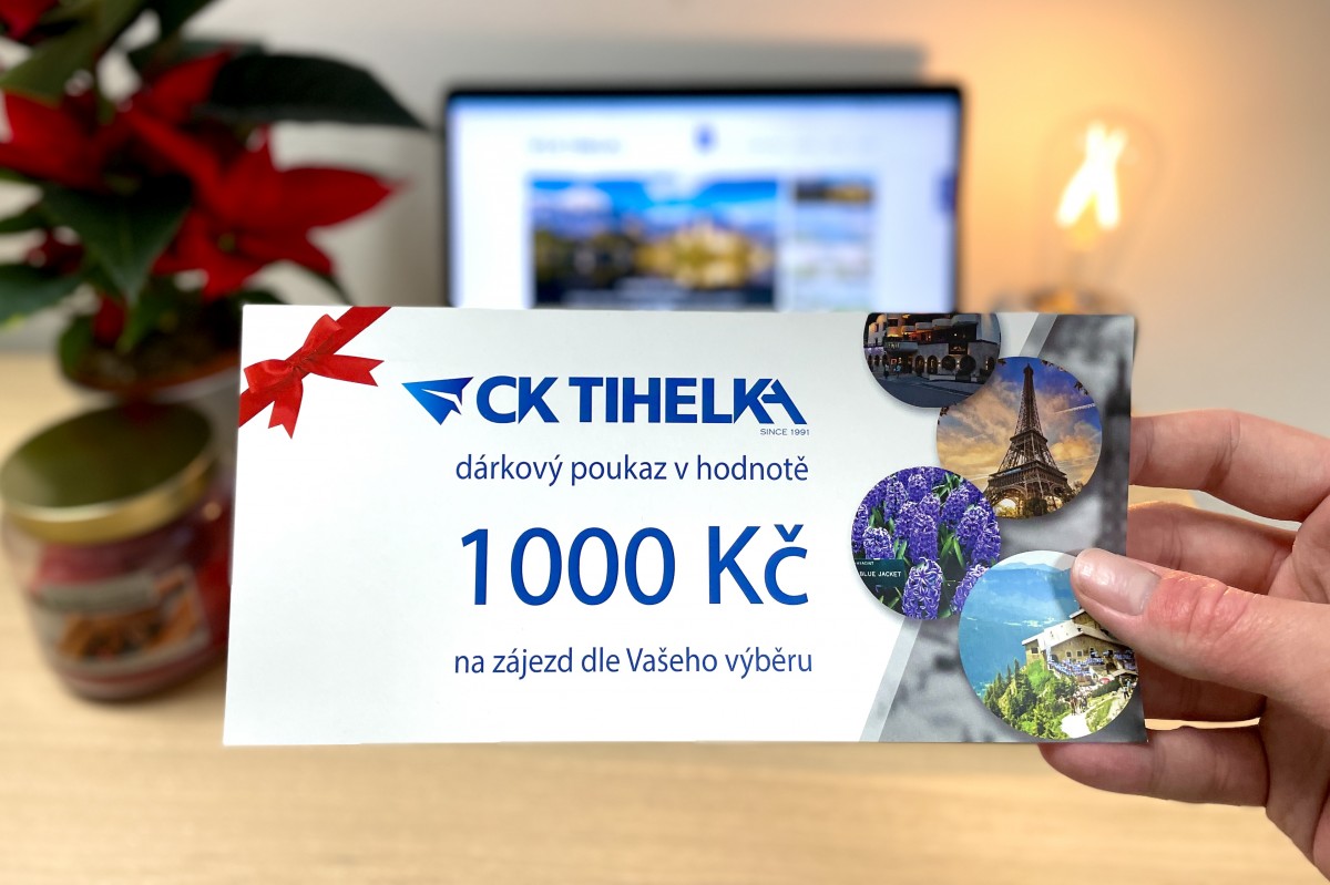 Nově nabízíme dárkové poukazy v hodnotě 500 Kč, 1 000 Kč, 2 000 Kč a 5 000 Kč. Ideální dárek k Vánocům pro Vaše blízké. Poukazy platí jeden rok a můžete je uplatnit na všechny zájezdy z naší nabídky. Poukazy nabízíme v papírové i elektronické verzi. Pro zakoupení nás kontakujte na info@cktihelka.cz